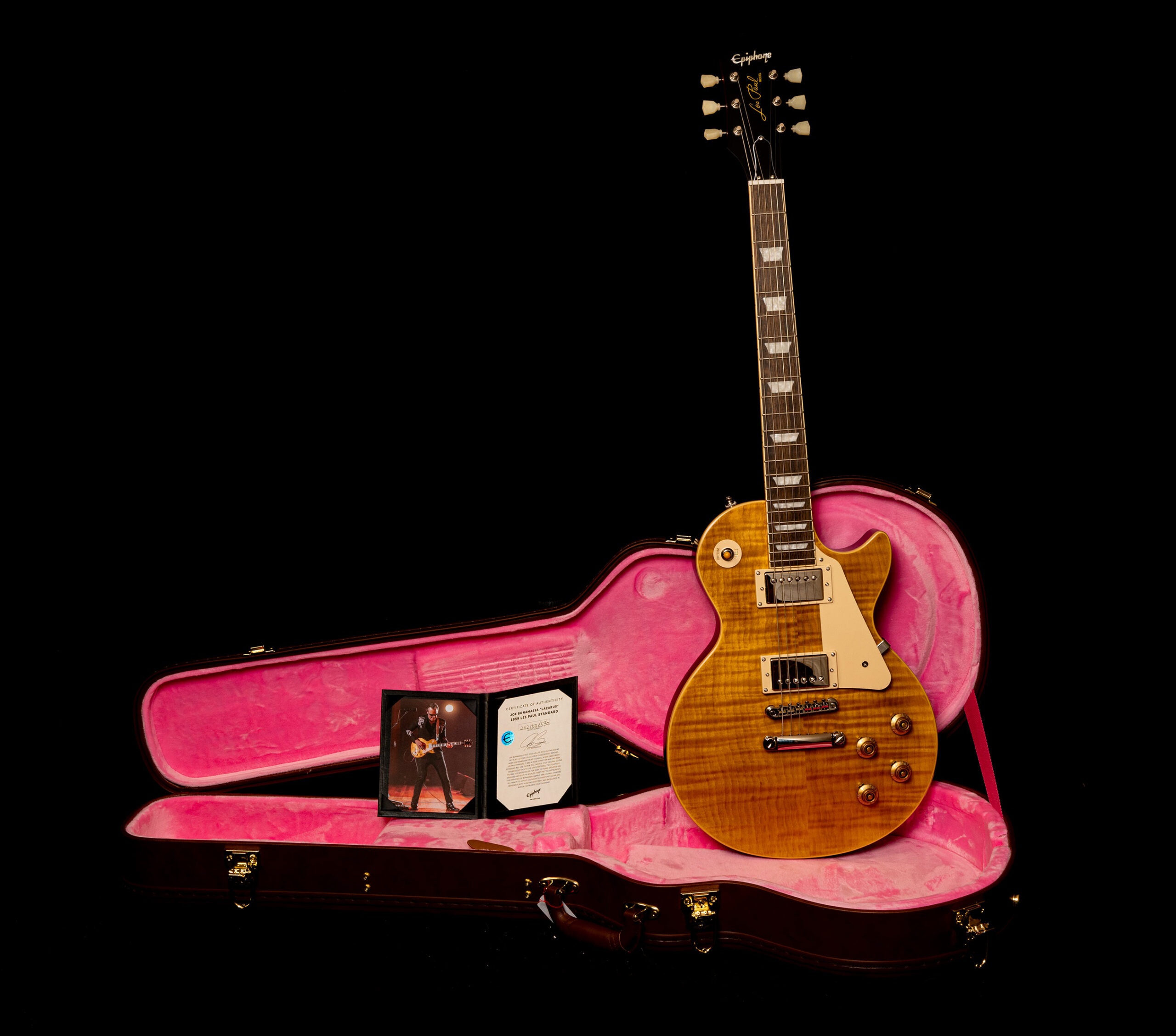 Das in limitierten Stückzahlen produzierte Replikat von Joe Bonamassas raren Gibson Les Paul Standard von 1959. Die Les Paul mit dem Spitznamen „Lazarus“ gehört zu einer der meist benutzten Instrumente in Joes Arsenal von bösen Vintage-Gitarren.